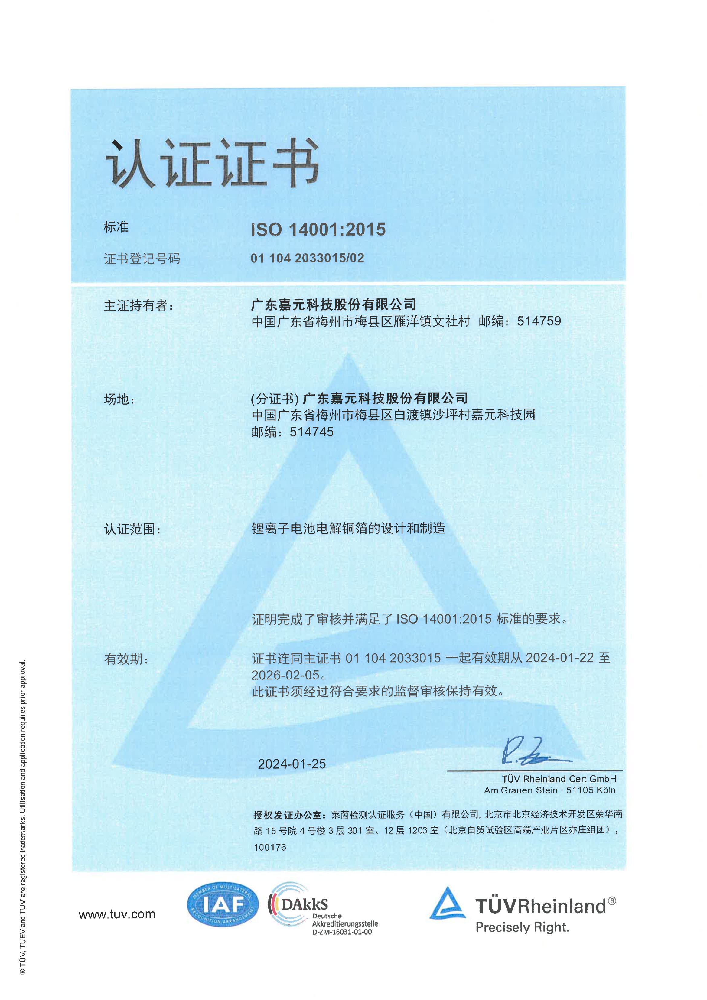 ISO 14001:2015認(rèn)證證書